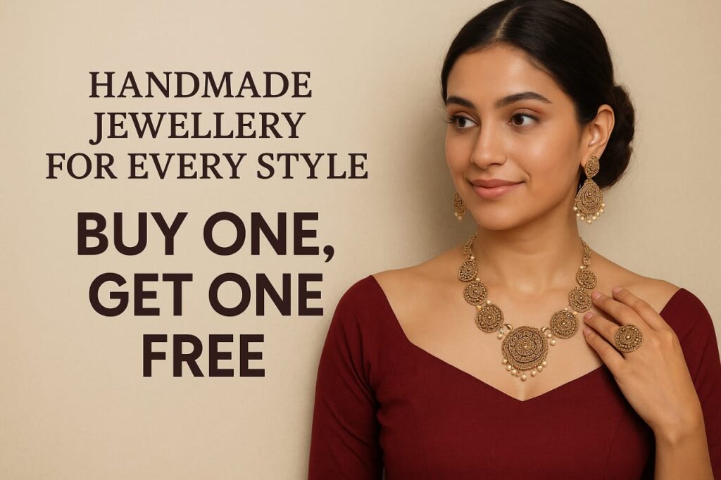 Welcome to our Handmade Jewellery collection, where artistry meets elegance in every piece. Discover exquisite handmade jewellery designs, from vibrant handmade flower jewellery for Haldi to unique fabric creations and dazzling beaded accents. Each item is crafted with care, blending tradition and modern handmade jewellery styles for a look that’s both timeless and contemporary.
